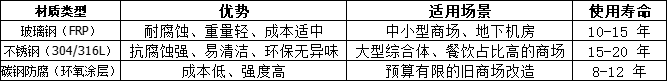 •注:餐飲集中區域優先選擇 316L 不銹鋼材質,可耐受高油脂、高鹽度污水的腐蝕。
