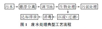 當前國內外對食品工業廢水的處理主要是生物處理,比較成熟的處理方法有厭氧接觸法、厭氧污泥床法、酵母菌生物處理法等,典型的處理流程如圖1所示。